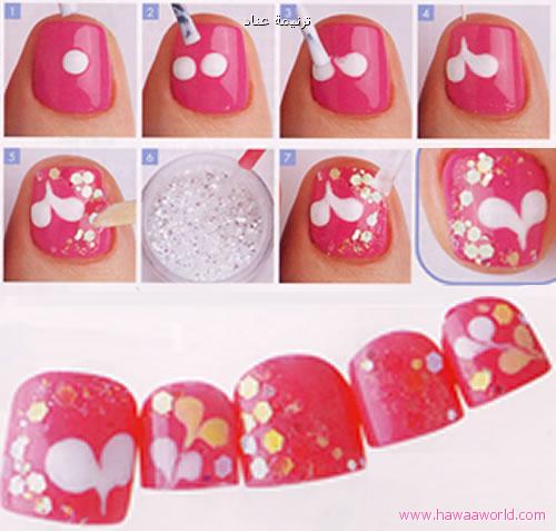 *** وممكن لو حابة شي ناعم وسمبل تسوين مناكير فرنسي وتلصقين عليه اكسسورارات للاظافر تحصلينها بدايسو باشكال و أنواع وألوان متعددة مثل الصورة ...