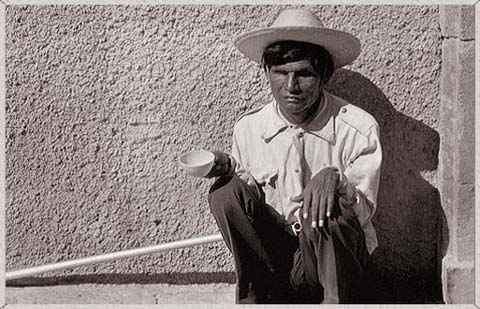 جلس رجل أعمى على إحدى عتبات عمارة واضعا ً قبعته بين قدميه وبجانبه لوحة مكتوب عليها : ' أنا أعمى أرجوكم ساعدوني '.