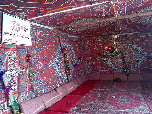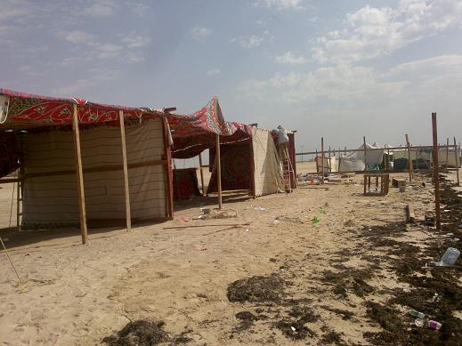 طبعا تكون المخيمات ملاصقة لبعض من شدة الزحمة