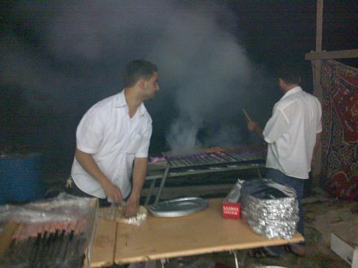 صورة للشواء في احد الأيام طبعا مطعم يتكفل بكل شيء يجي لحد عندنا بالمخيم