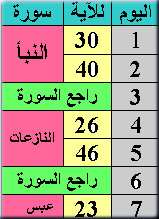 جدول اليوم الاول لجزء عم .. سورة النبأ