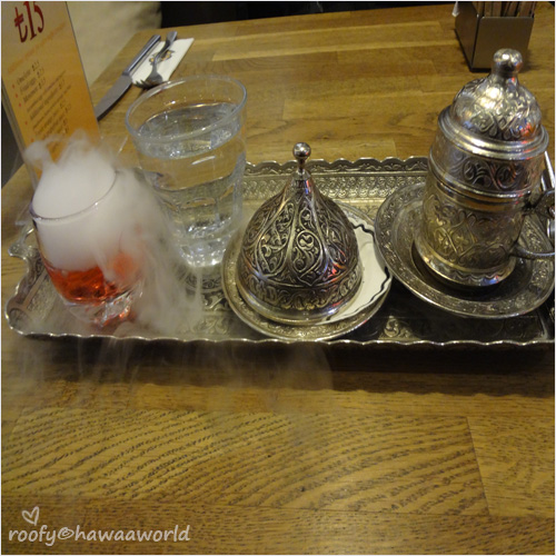 قهوه تركي وجنبها كاسه ماء فواره ريحتها حلوه
