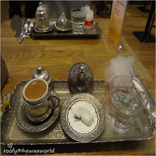 القهوه التركي ،،والاكراميه دايما حلاوه حلقوم مع اي طلب