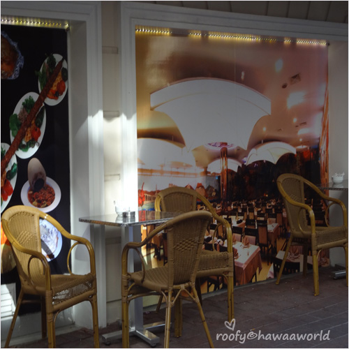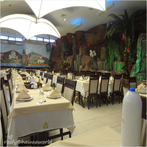 وصلنا المطعم ماشاء الله كبير وكان تقريبا فاضي كان في الاستقبال جارسون يتكلم عربي