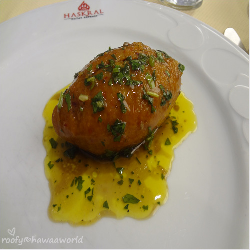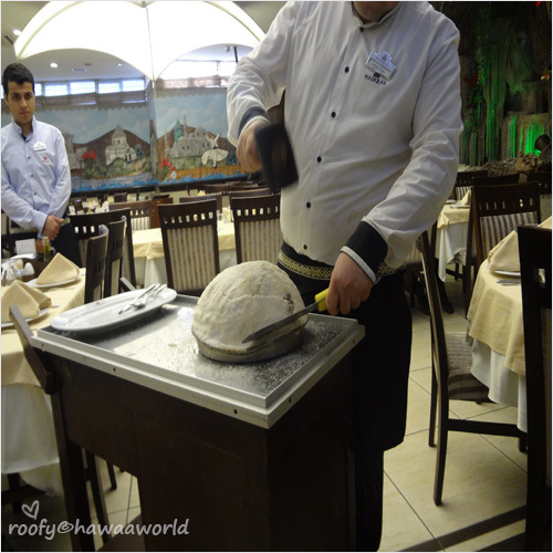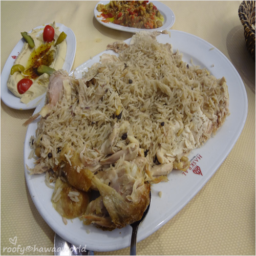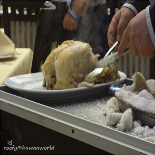 الطلب كانت دجاجه بالملح المطعم مشهور فيها عباره عن دجاجه محشيه رز ومغطيه بالملح من الخارج تجي والنار عليها يطفي النار ويبعد الملح ويقطعها قدام الطاوله حقتنا