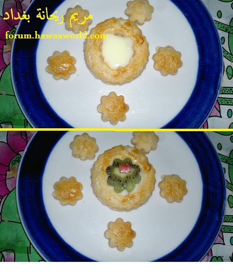 نبدا بالقطع اللي زادت نسوي فيها كاسات مع الكاسترد والفواكه والصور توضح الخطوات