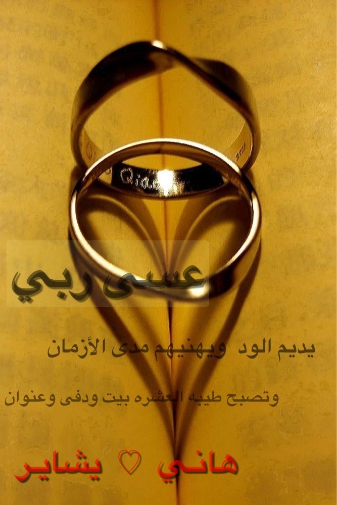ابيها باسم هاني و بشاير تكفون ضروري باسرع وقت وابغى هاذي العبارة مكتوبه فيها ( عسى ربي يديم الود و يهنيهم مدى الأزمان وتصبح لهم طيبة العشرة بيت ودفى وعنوان )