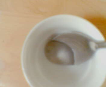 ومن ثم بعد ان نذيبه بالماء نضعه على الحليب الدافئ ونوزعه على كله ونحرك الحليب بالملعقة كويس