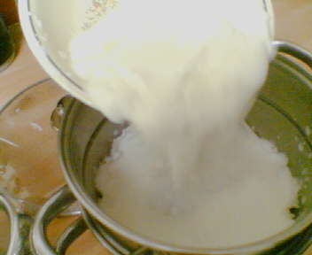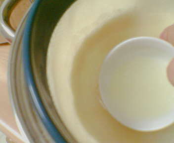 نضع الحليب في القدر حتى تصبح حرارته محتملة يعني اقرب للدافئ
