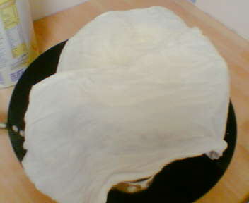 ونضع حتى تمتلئ المصفاة ونتركه يصفى تماما تقريبا بياخذ من الوقت 3 او اربع ساعات وهو عبيصفى