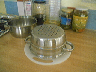 ناخذ منه صحن ونضعه في المصفاة