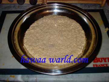 وبعد مرور الوقت فكي الغطاء والقصدير وأظربي الجريش بمضرب خشب وخليه على جنب