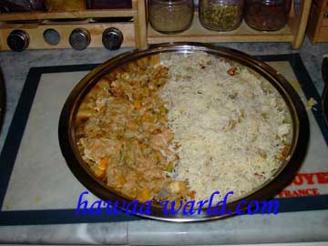 والقدر الثاني نضيف له الارز ونسوي الارز مجبوس فيه