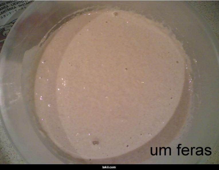 ويخلط بماء حتى تتكون لدينا عجينه سائله (تقريبا كاس ما وممكن اكثر =مثل البان كيك تصير)