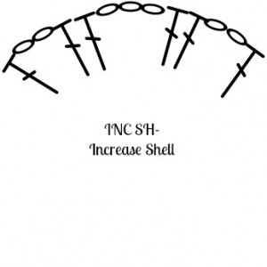 اما فوق صدفة التزويد اشتغلي كما يلي : صدفة في مسافة اول 2 سلسلة ، و صدفة المركز او الركن في مركز مسافة ال3 سلسلة ثم صدفة في ال 2 سلسلة التالية .