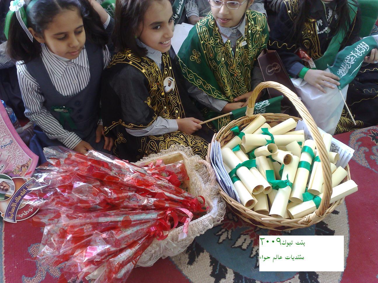 نبدأ باحتفال الابتدائية الرابعة عشر بتبوك تحت قيادة ادارة المدرسة تترأسها مديرتنا الفاضلة أسأل الباري أن يمد في عمرها على طاعة الله وأن يلبسها لباس الصحة والعافية ومعلمات المدرسة والطالبات حتى المستخدمات شاركنَ معنا بقصائد مهداهـ للمليك حفظه الله