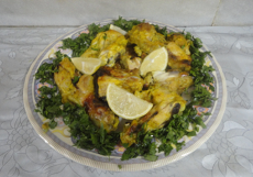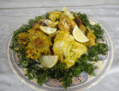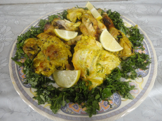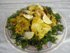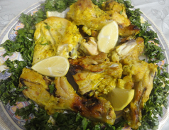 وهذا دجاج تبلته في ثوم وبصل وزبادي وبهارات وكمون وكركم ودخلته الفرن ..