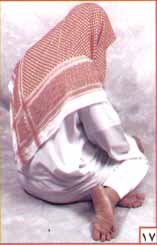 * ويضع يديه في هذه الجلسة على فخذيه ، وأطراف أصابعه عند ركبتيه ، وله أن يضع يده