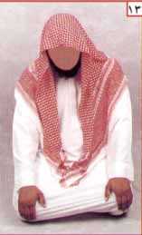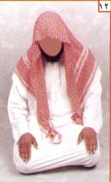 وتكون هيئة يده اليمنى كما في الصورة : يقبض أصبعه الخنصر والبنصر ويُحلق الإبهام مع الوسطى ويشير