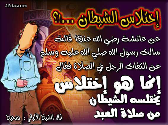 . وسئل النبي صلى الله عليه وسلم عن الالتفات في الصلاة فقال هو اختلاس يختلسه الشيطان من صلاة العبد .