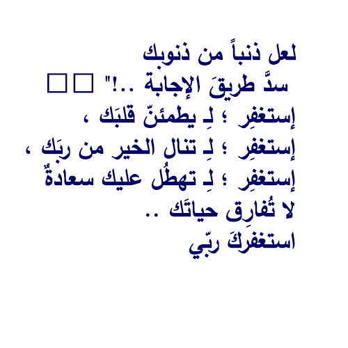 كُلَّمَا استغْفٓرت الله إنْحٓلٓت عنكٓ عُقدة مِن عُقٓد هٓمّك وانْهٓلّٓت على قٓلبِك النِعٓم