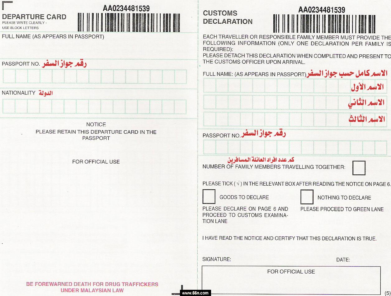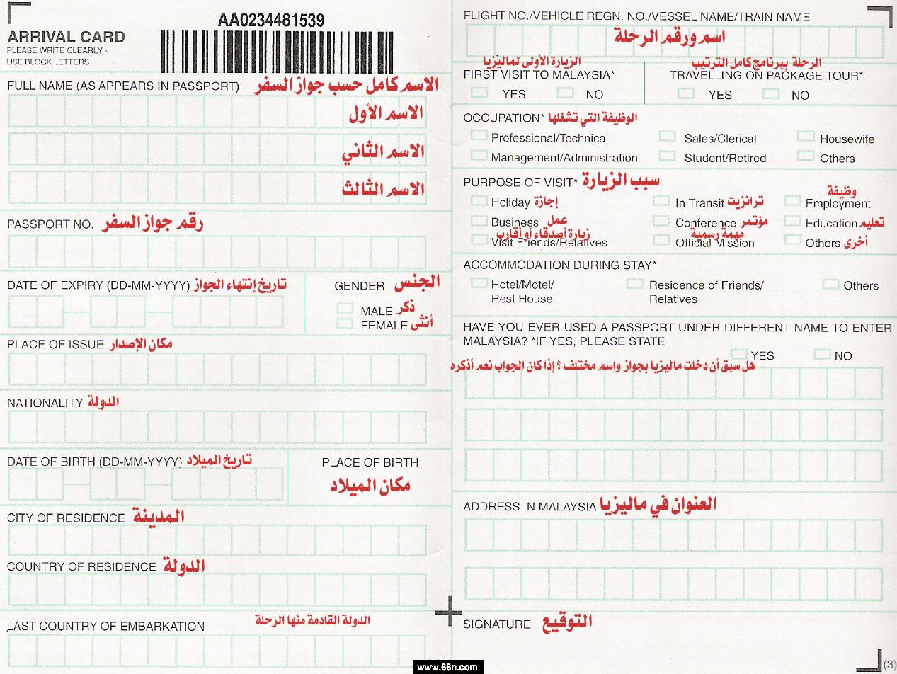 من ضمن الإجراءات تعبئة بيانات كرت الدخول لماليزيا