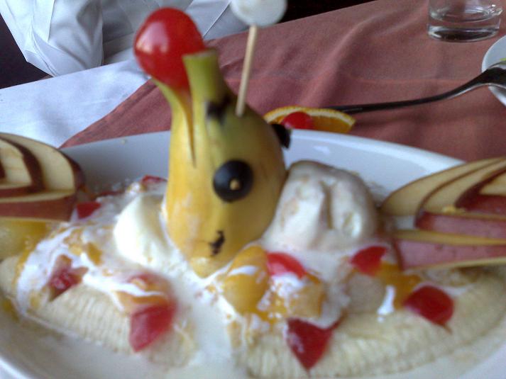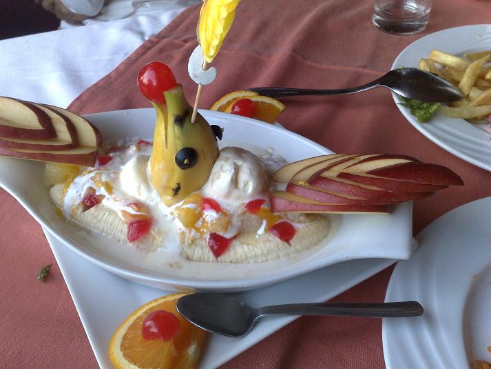 ويا عندهم حــــــــلا لذيذ .. ومعه ايس كريم وشوية فواكه ...