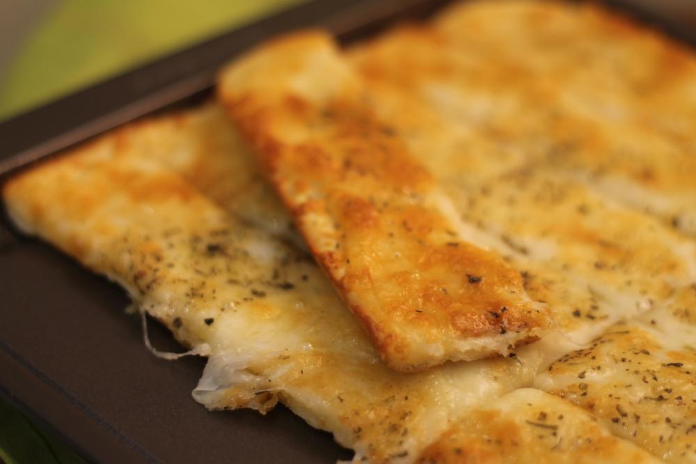 المقادير : 3ملاعق حليب مجفف . 2ملعقة سكر . ملعقه كبيييره خميره . ملعقة بيكن بودر . 4ملاعق زيت . ملعقه صغيره ملح . نصف كوب ماء . الدقيق بدون مقدار بتضضيفي دقيق لما تصير عندك عجينه متماسكه وملساء .2طعام سمنة فارم . او 2ملعقة زبده مخلوطه مع 2ملعقه من زيت الزيتون .ملعقه ثوم بودره .خليط من جبن القشقوان وجبن موزاريلا. الطريقه : يوضع الحليب والسكر والخميره والبيكن بودر والماء والزيت وتقلب بالمضرب اليدوي جيدا وتترك لمدة 10 دقائق . ثم يضاف الدقيق وتوضع في العجانه اوتعجن باليد جيدا تغطى وتترك لتختمر . بعد اختمار العجين تفرد رقيقه قليلا ثم توضع في صينيه مدهونه تخرم العجينه بالشوكه حتى لاترتفع كثيييرا . تدهن بسمنة فارم او زبده مع زيت زيتون وتخلط بملعقة طعام ثوم بودره يدهن سطح العجين وترش با الجبن وقليل من الاوريغانو تحمر في الفرن وتقدم ساخنه وبالعافيييه