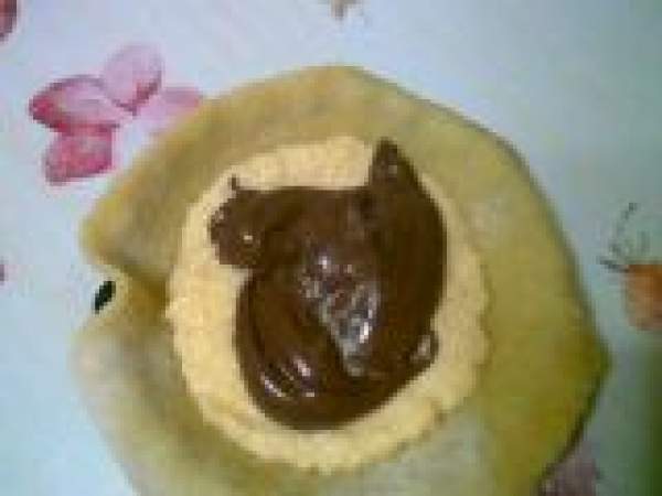 4 بيض + 100 غرام سكر + 160 غرام بودرة جوز الهند + نوتيلا
