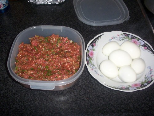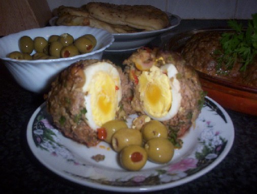 هذه وصفة اللحم المفروم محشي بيض وزيتون ....
