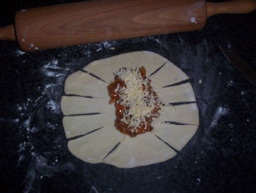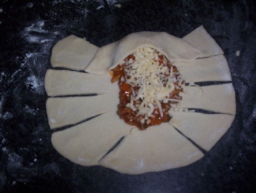 ان يستوي نضيف صلصة البيتزا ونتركها تغلي شوي ...ونرفعها عن النار ...