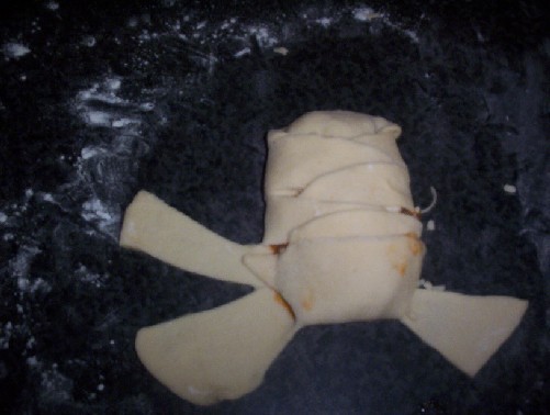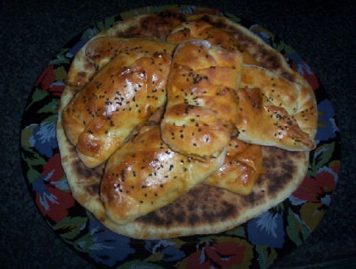نتركها تختمر مرة ثانية حتى يتضاعف حجمها ندهنها بالبيضة ونزينها بحبة البركة ........