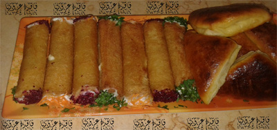 بصل جزر مبشور بطاطس مبشور فلفل رومي ثوم تتشوح مع بعض اليت نذبل ونحط البهارات والملح واذا نشفت محط عليها ملعقتين مايوميز مع ملعقه طحينيه سايله ونحشي فيها التوست االمفرود مره رقيقه على شكل مستطيل ونلصق الاطراف بالعجينه