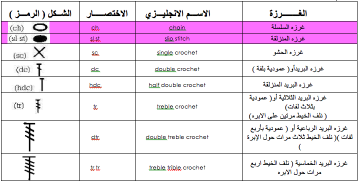 بعضنا كثيرا ما يتعامل مع الباترونات الاجنبية وبعض هذه الباترونات قد لاتذكر رقم الخيط انما تسميه برمز معروف لدي المحترفين بالكروشيه