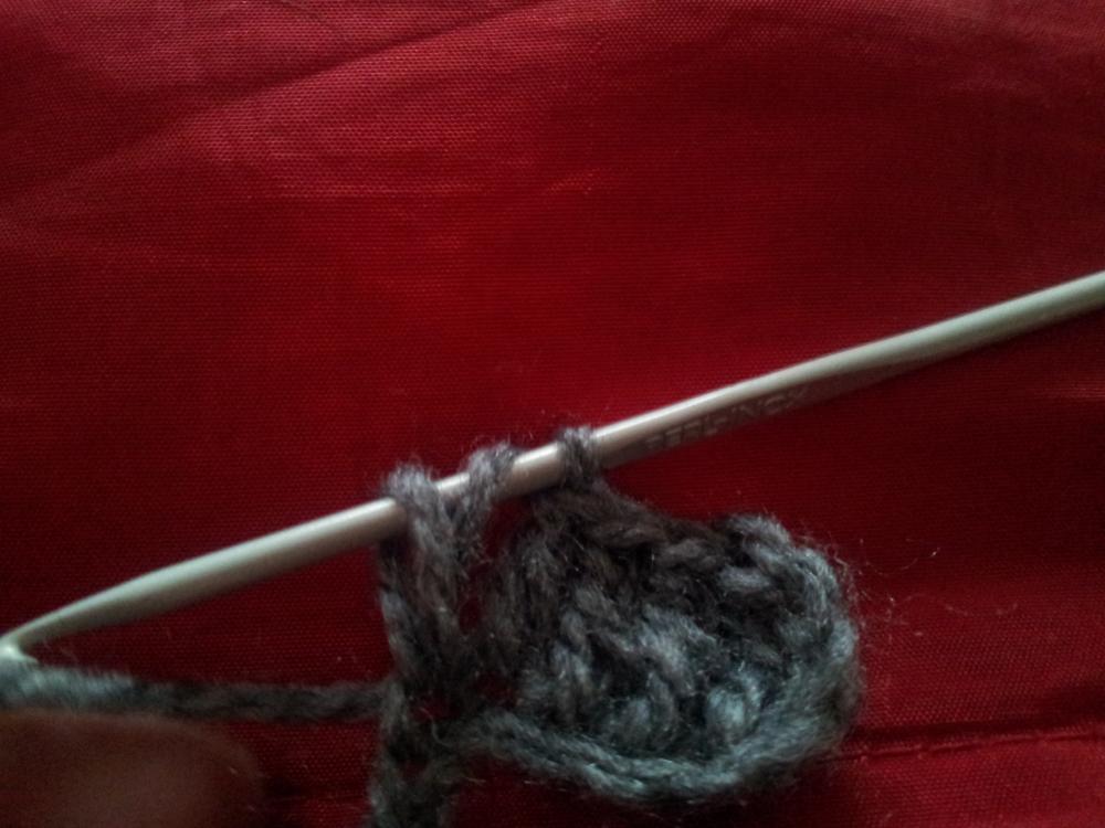 اصبح معانا 3 لفات على الابرة نسحب خيط ونخرج بيه من لفتين فقط