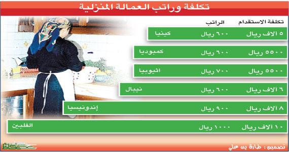وأشاروا إلى الالتزام بأسعار الاستقدام التي حددتها اللجنة الوطنية للاستقدام، مؤكدين أن هناك حاليا طلبا من قبل الأسر للاستقدام من إثيوبيا ونيبال، حيث تصل تكاليف الاستقدام من إثيوبيا ما بين 5500 إلى 6000 ريال براتب شهري 700 ريال، وفترة استقدام لا تتعدى الشهرين. ومن كمبوديا براتب 600 ريال، ومن كينيا تبلغ تكاليف الاستقدام 5 آلاف ريال، وبراتب شهري بمقدار 600 ريال. وتبلغ تكلفة العمالة المنزلية من نيبال حوالي ستة آلاف ريال، والراتب يتراوح بين 600 إلى 750 ريالا والمدة لا تتجاوز 45 يوما.