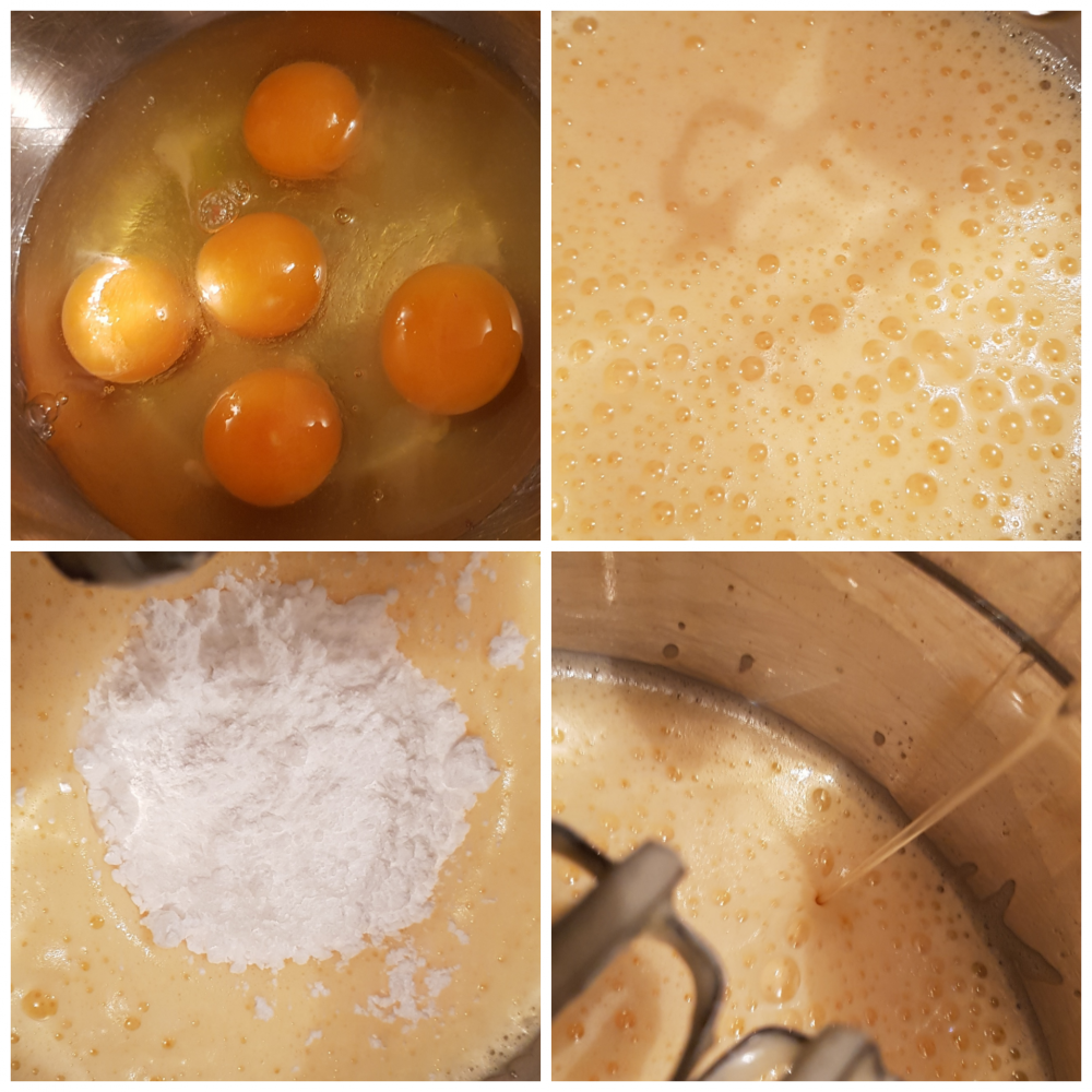 يخفق البيض جيدا على السرعه العاليه حتى ينفش ويبيض ثم نضيف عليه السكر ويخفق ثم الزيت ويخفق نضع الخلاط على السرعه البطيئه ونضيف الطحين والبيكن باودر بالتدريج حتى يتجانس الخليط يصب الخليط على الاناناس ويدخل الفرن على 160 درجه لمدة نص ساعه ... بعد ما تنضج الكيكه نتركها عشر دقائق ثم نقلبها في صحن التقديم وتترك بالثلاجه حتى تبرد تماما.