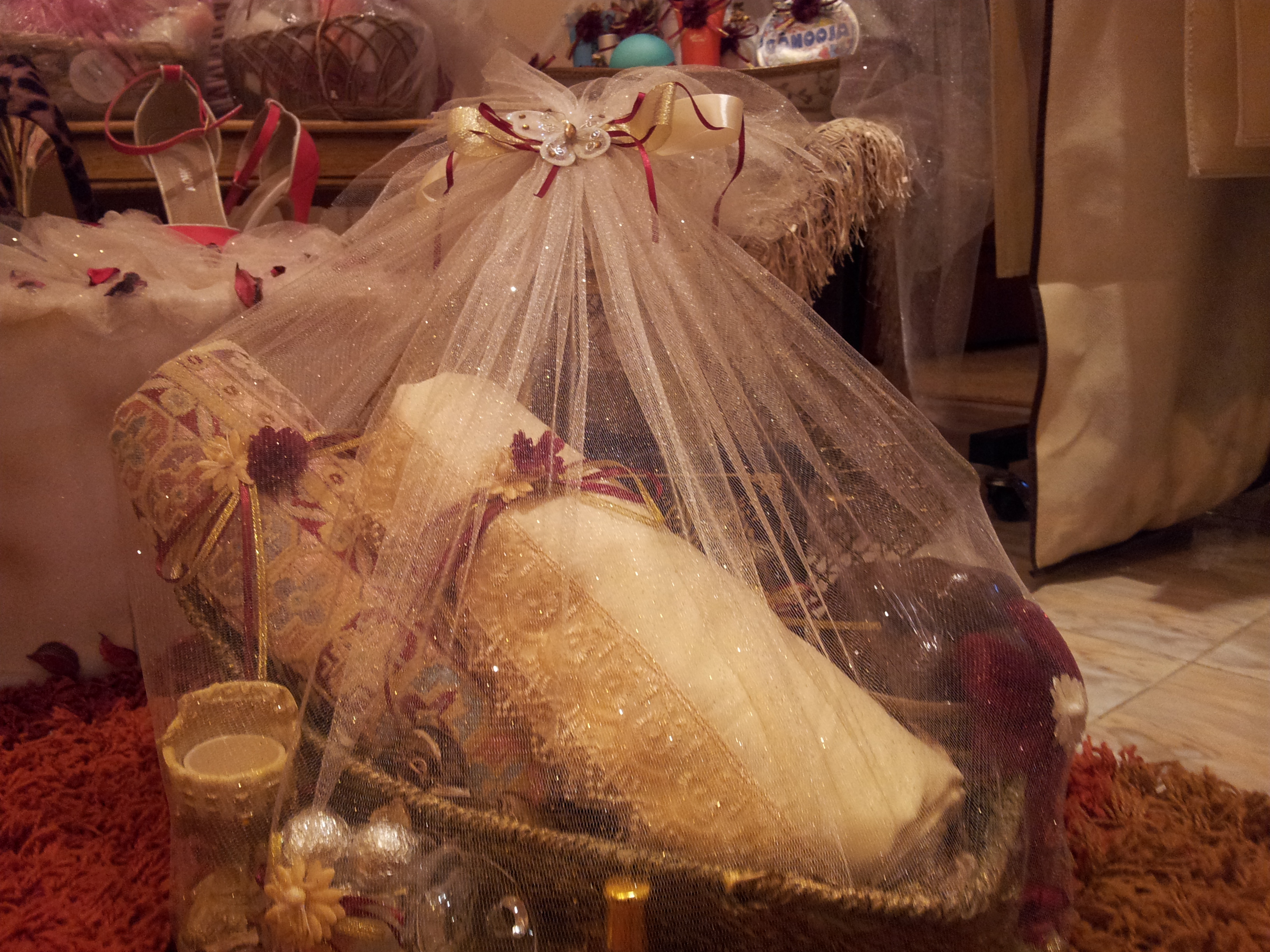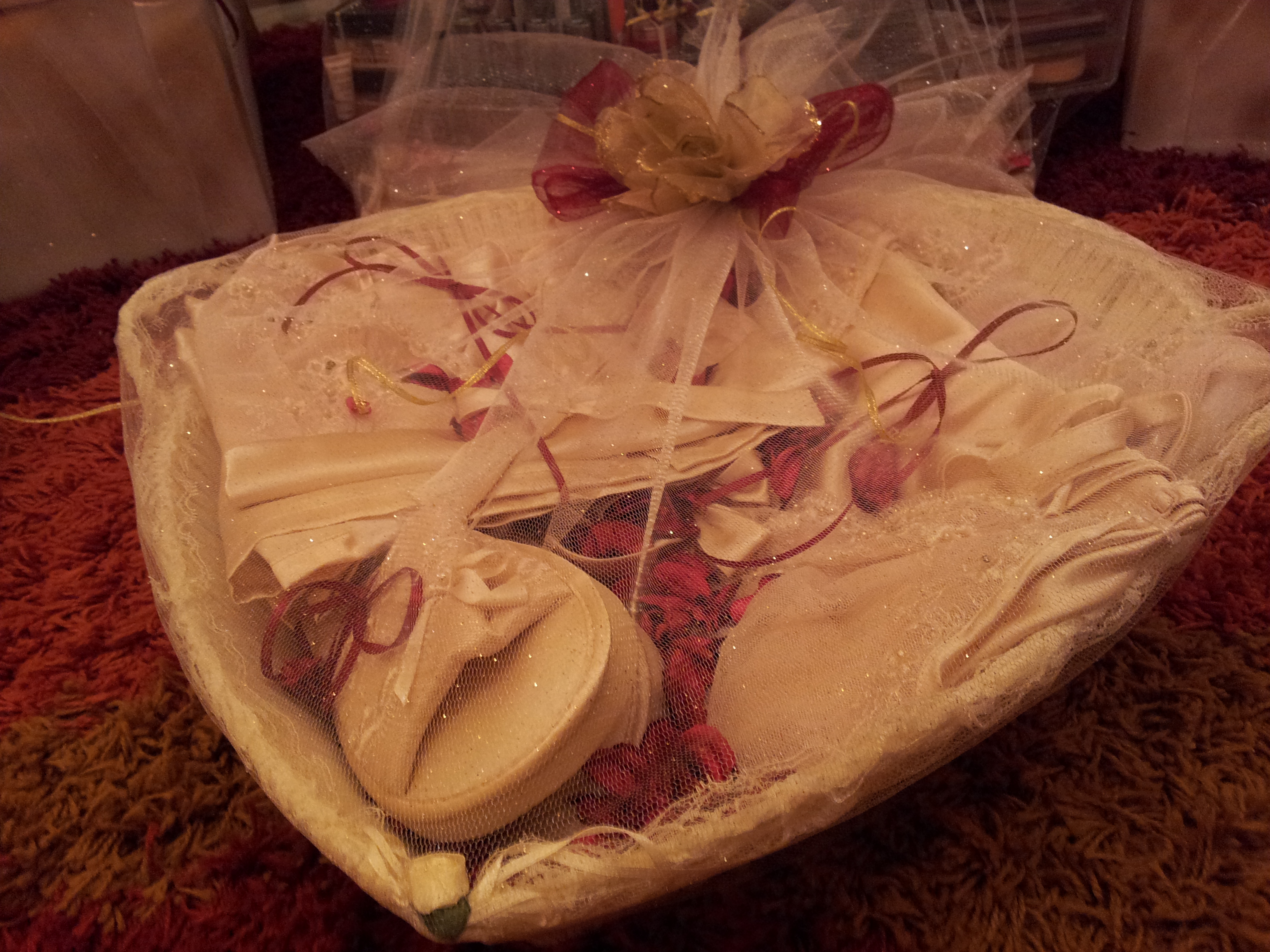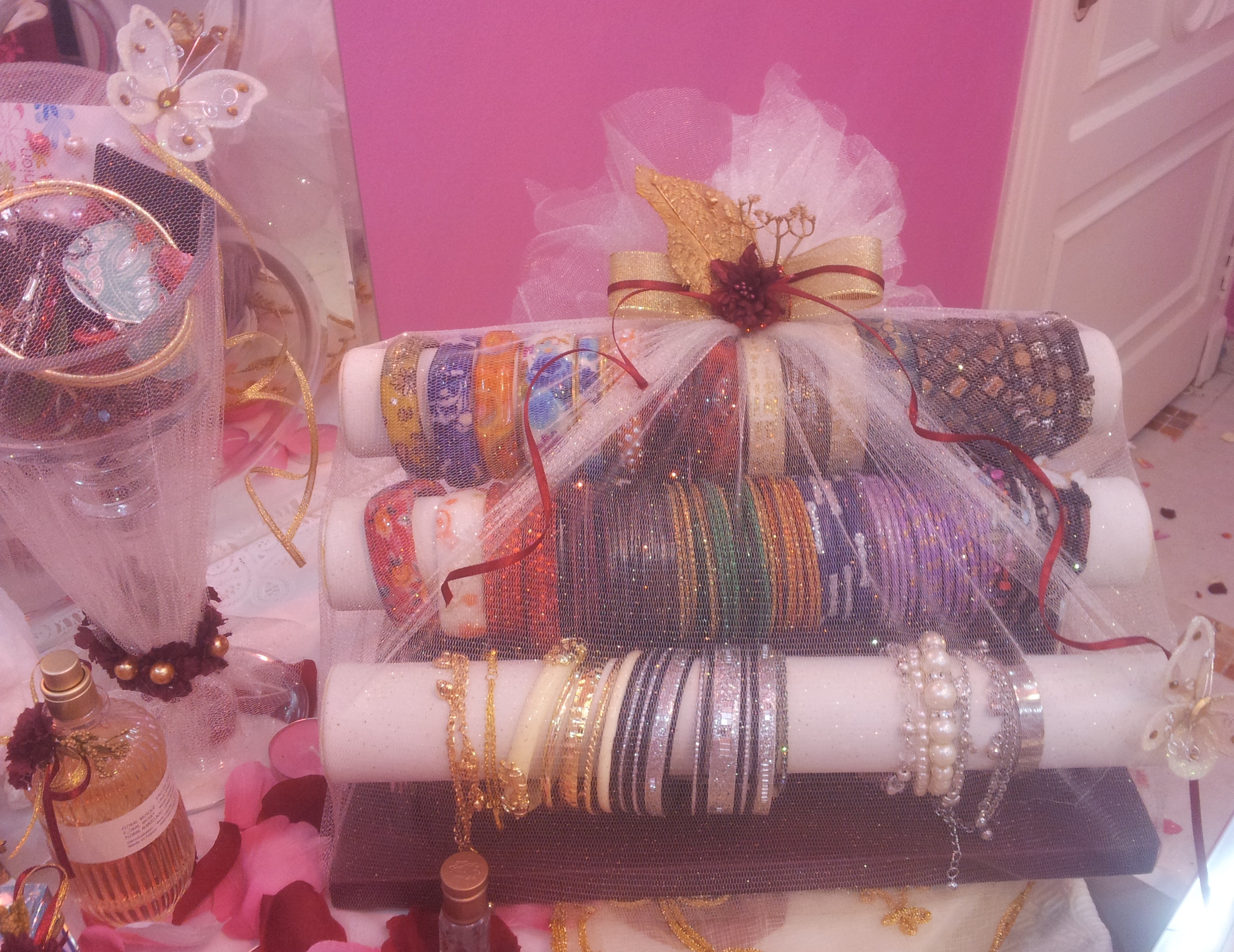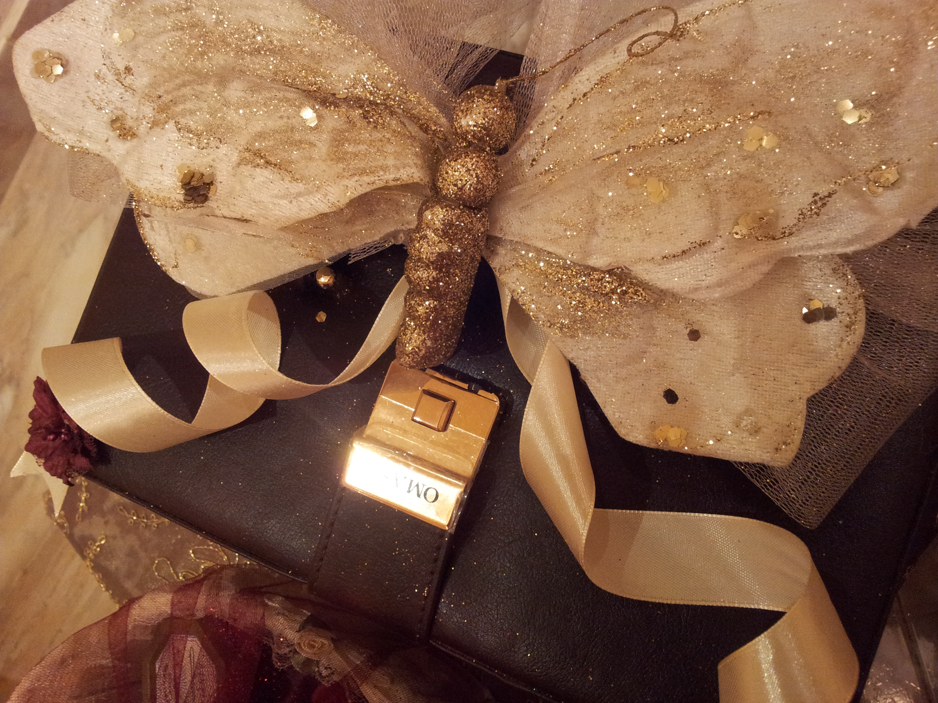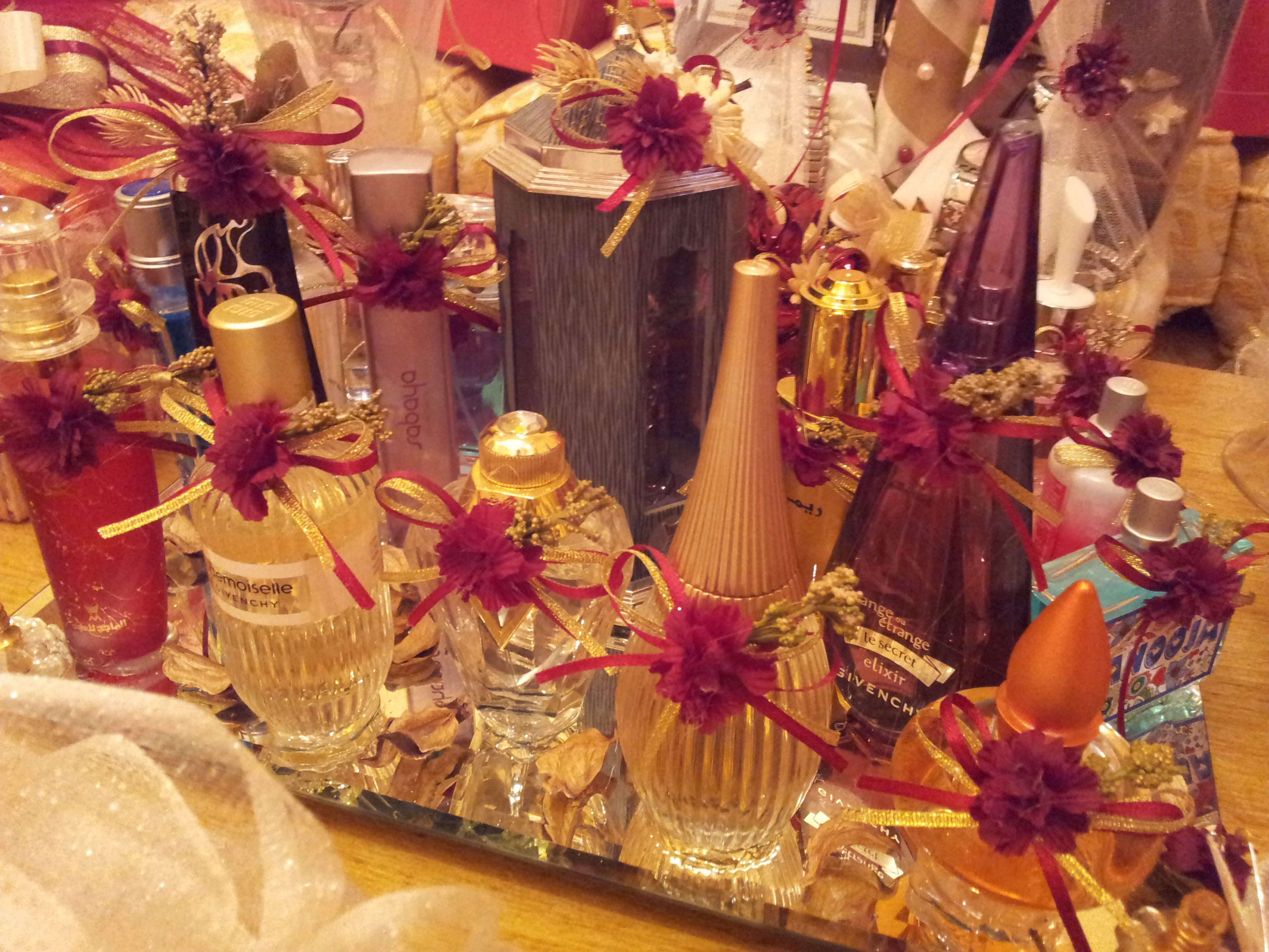 وحطيت العلب والميك اب ورميت ورد مجفف وقش ووغلفتو بتول
