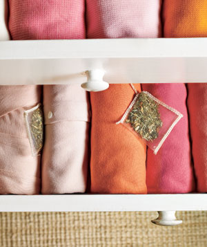 المحافظة على ريحة الملابس ممكن وضع كيس من الاعشاب العطرية مثل النعاع وغيره بهذي الطريقه بين الملابس