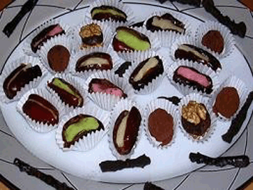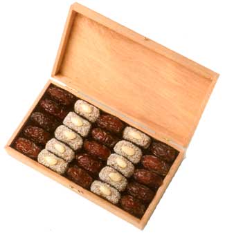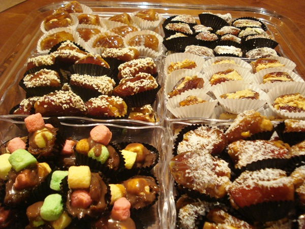 يقدم التمر محشي بعجينة اللوز ملونة او بمكسرات ولكم الطريقة مع بعض الصور