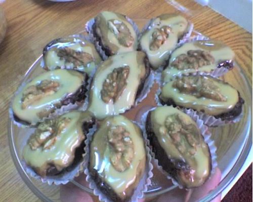 النواة منها وارشها بالكراميل واضع فوق الكراميل حبة المكسرات جوزاو لوز