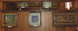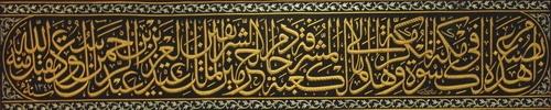 قطعة من كسوة الكعبة المشرفة تسمى قنديل نقش فيها نص كتابة الحمد لله رب العالمين