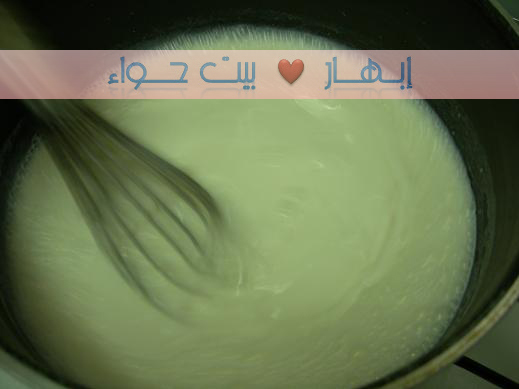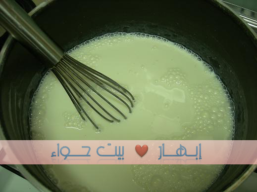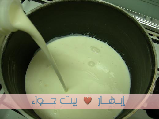 على نارهادئة لمدة عشر او15دقيقة حتى تحسين إن اللبن بدأ يثخن