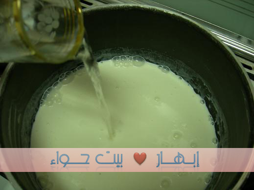 الان حطي عليه شوي لبن وحركيه باصابعك حتى يختفي الدقيق