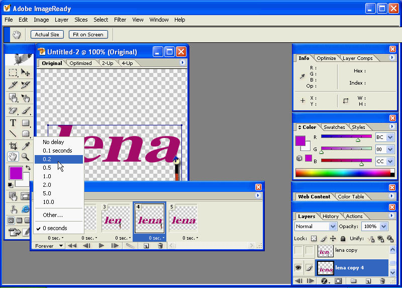 اختي عصفوره اتفضلي هذا الدرس :) وانا انتظرج تساعديني فيه :) بسم الله الرحمن الرحيم بس يحتاج الي تركيز و دقه لتنفيذه هو الكتابة بالريشه المتحركة و يمكننا ان نستخدم ريشه او قلم او ورده 1 --- نفتح طبقة بالمقاسات المرغوب بها 2 -- نقوم بكتابة النص الذي نريده 3 - نضيف طبقة جديدة 4 -- نضيف الاداه التي نريد استخدامها في الكتابة مثل الفرشاة في الطبقة الجديدة 5 - نقوم بمضاعفة طبقة الكتابة بعدد يساوي اكثر من عدد حروف النص بطبقة 6 - و نقوم بطبقة الريشة بعدد يساوي عدد الحروف بالنص 7 - نقوم باختيار طبقة ريشه مع طبقة النص مع التأكد ان طبقة الريشه اعلي طبقة النص 8 - نقف علي طبقة الريشه و نحرك الريشه بحيث تكون عند نهاية الحرف الاول 9 - نقوم بالوقوف علي طبقة الكتابة الان و الضغط بيمين الماوس و اختيار restrize 10 - نقوم بمسح باقي الحروف ماعدا الحرف الاول الذي وضعنا علي نهايته الريشه 11 - نقوم بالضغط ctrl+ shift + e 12- بعد دمج الطبقتين نغلق العين منهم 13 - نختار طبقة اخري من طبقات النص مع طبقة من طبقات الريشة 14 - علي ان تكون طبقة الريشه اعلي طبقة النص و نقف بالريشه علي نهاية الحرف الثاني 15 - نمسح باقي الحروف ما عدا الاول و الثاني الذي و ضعنا الريشه علي نهايته 16 - نكرر هذه الخطوات بالترتيب حتي اخر حرف و تكون اخر طبقة الكلمة نفسها كاملة 17 - نحول العمل الان علي الايمج ريدي 18 - نزيد الزمن وهذا نموذج من التطبيق للدرس الدرس منقوووووووووووووووووول :26:اختي عصفوره اتفضلي هذا الدرس :) وانا انتظرج تساعديني فيه :) بسم الله الرحمن الرحيم بس...