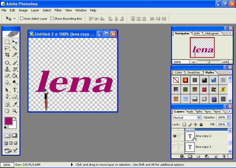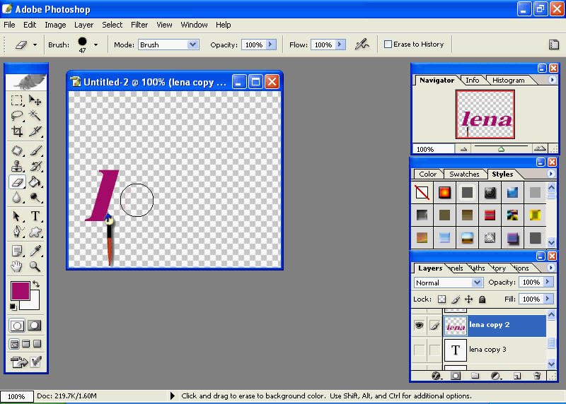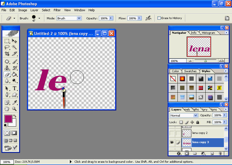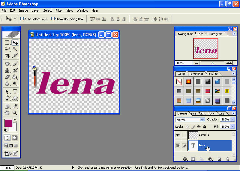 4 -- نضيف الاداه التي نريد استخدامها في الكتابة مثل الفرشاة في الطبقة الجديدة