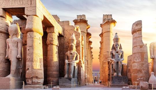 معبد الأقصر معبد كبير من المعابد المصرية القديمة المعقدة يقع على الضفة الشرقية لنهر النيل في مدينة الأقصر اليوم المعروفة باسم (طيبة القديمة). تأسس سنة 1400 قبل الميلاد. شُيد معبد الأقصر لعبادة آمون رع وزوجته موت وابنهما خونسو؛ وهي الآرباب التي يطلق عليها أيضا لقب الثالوث الطيبي (ثالوث طيبة). تم تشييد معبد الأقصر في عهد ملوك الأسرة الثامنة عشر، والأسرة التاسعة عشرة. وأهم الأبنية القائمة بالمعبد هي تلك التي شيدها الملكان أمنحوتب الثالث (1397-1360 ق.م.) ورمسيس الثاني (1290-1223 ق.م.) (الذي أضاف إلى المعبد الفناء المفتوح والصرح والمسلتين). كما أقام الملك تحتمس الثالث (1490-1436 ق.م.) مقاصير لزوار ثالوث طيبة المقدس، كما قام توت عنخ آمون (1348-1337 ق.م.) باستكمال نقوش جدرانه. وقد دُمُرت المقصورة الثلاثية التي كانت قد شُيّدت من قبل في عهد الملكة حتشبسوت والملك تحتمس الثالث (من الأسرة الثامنة عشرة)؛ ثم أُعيد بناؤها في عهد الملك رمسيس الثاني. سمي المعبد أيضاً «إيبت رسيت» (وتعني الحرم الجنوبي أو المكان الخاص بآمون رع). وهو من أحسن المعابد المصرية حفظاً وأجملها بناء، وفيه يتجلى تخطيط المعبد المصري أوضح ما يكون