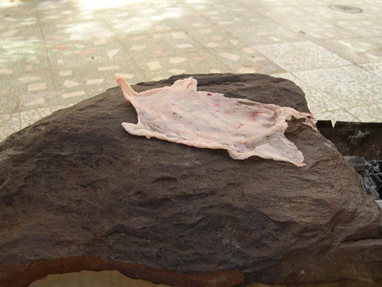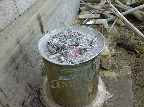وبعدين يجيبوا شجر يابس يسمونه القنا ويشعلونة ويضعونة من فوق ’’ وبعدين يلموا الجمر عليها وتترك تقريباً نصف ساعة وهذا يعتمد على الحجم وإليكم الصور المسروقة من موضوع ’’’ أستاذي ,, المحال