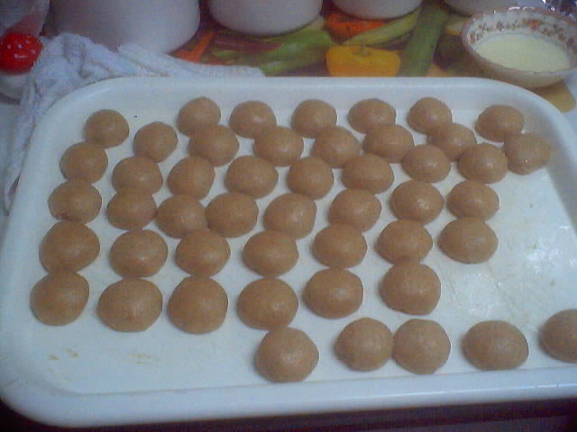 وأخيرا اجمعيها ورشي عليها قليل من السمن لتكون شبه متماسكه . ذلك حسب الحاجه .