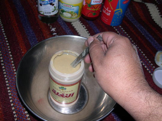 بالحيل وطعمه مامثله حانطن بالحيل .وحطه بالبراد ليمن تجهز لحيمتك الي بالحصاة والا على كبوت السيارة كانك بالبر عشان مايجي واحدن ماصل ويغط اصبعوه بها وهم غطه عن الذبان .